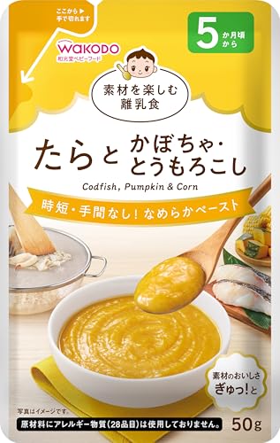 和光堂の『素材を楽しむ離乳食』は、味付けをせず素材本来の風味を活かしたなめらかペーストのベビーフードです。